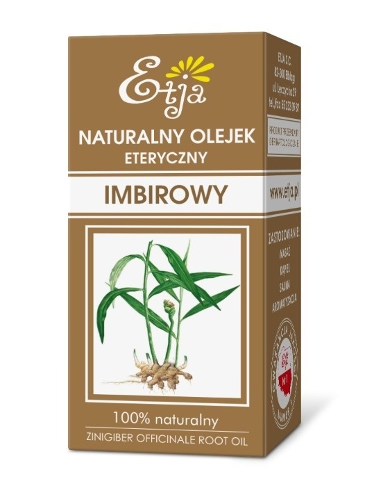 100% naturalny olejek eteryczny o korzenno-ostrym zapachu pozyskiwany z kłączy byliny imbiru w procesie destylacji parą wodną. Od wieków ceniony w medycynie chińskiej, wykazuje właściwości antyseptyczne, przeciwzapalne i rozgrzewające. Działa odkażająco, bakteriobójczo i odświeżająco. Olejek imbirowy silnie pobudza krążenie, co pozytywnie wpływa na redukcję cellulitu i nadmiernej tkanki tłuszczowej. Poprawia ukrwienie i łagodzi ból przy urazach, bólach reumatycznych oraz zakwasach. Jest pomocny w leczeniu przeziębień, szczególnie kaszlu i kataru. Zwiększa koncentrację, eliminuje mdłości, migrenowe bóle głowy oraz bóle menstruacyjne. Może być również stosowany jako afrodyzjak.