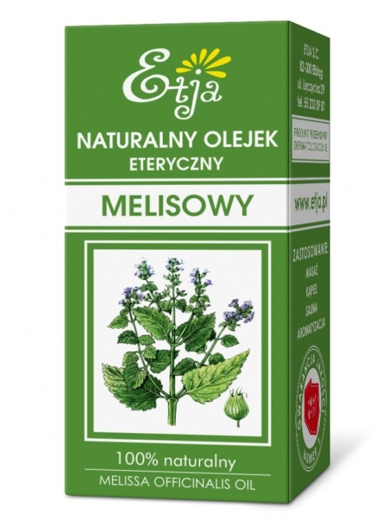 100% naturalny olejek eteryczny pozyskiwany z ziela melisy lekarskiej. Posiada silne właściwości uspokajające i tonizujące. Przywraca równowagę emocjonalną, łagodzi objawy depresji, bezsenności i niepokoju nerwowego. Może pomóc w przypadku zawrotów głowy, a także uśmierza ból po ukąszeniach i użądleniach owadów. Dodatkowo, uspokoja oddech oraz wspomaga przy niestrawności i nudnościach.