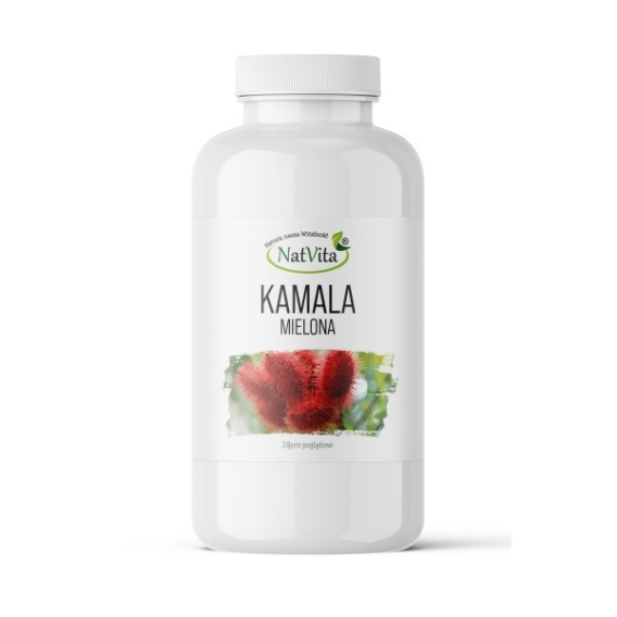 Skład: 100 % kamala (Mallotus philippinensis) brązowo-czerwone gruczoły i kępki włosków owoców mielone.