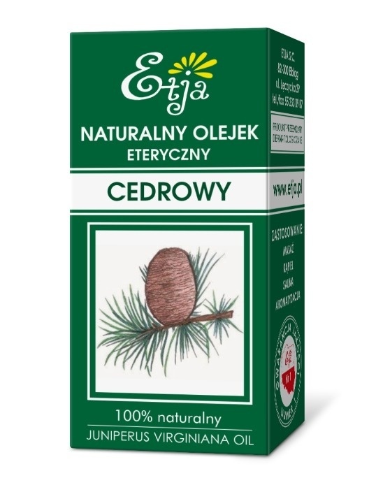 100% naturalny olejek eteryczny pozyskiwany z młodych gałązek i igieł drzewa cedrowego. Jest często wykorzystywany w aromaterapii ze względu na swoje wszechstronne właściwości. Skutecznie wspiera walkę z cellulitem, trądzikiem i łupieżem, a także zapobiega swędzeniu skóry. Pomaga w redukcji wyprysków i wrzodów. Olejek cedrowy działa uspokajająco, koi objawy depresji, niepokoju i strachu.