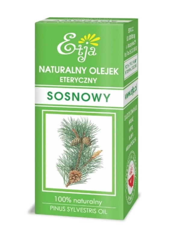 100% naturalny olejek eteryczny pozyskiwany z igieł sosny zwyczajnej. Posiada zdolności antyseptyczne w infekcjach dróg oddechowych i zatok - rozszerza drogi oddechowe i ułatwia oddychanie. Działa pobudzająco i odświeżająco na zmęczony umysł, usuwając objawy zmęczenia, wyczerpania nerwowego i nerwobóle. Może ograniczyć nadmierne wydzielanie potu i pobudzić krążenie. Dzięki właściwościom rozgrzewającym olejek sosnowy może łagodzić objawy reumatyzmu i artretyzmu. Działa wykrztuśnie, bakteriobójczo i dezynfekująco, dlatego jest często wykorzystywany do inhalacji. Zwiększa odporność organizmu,